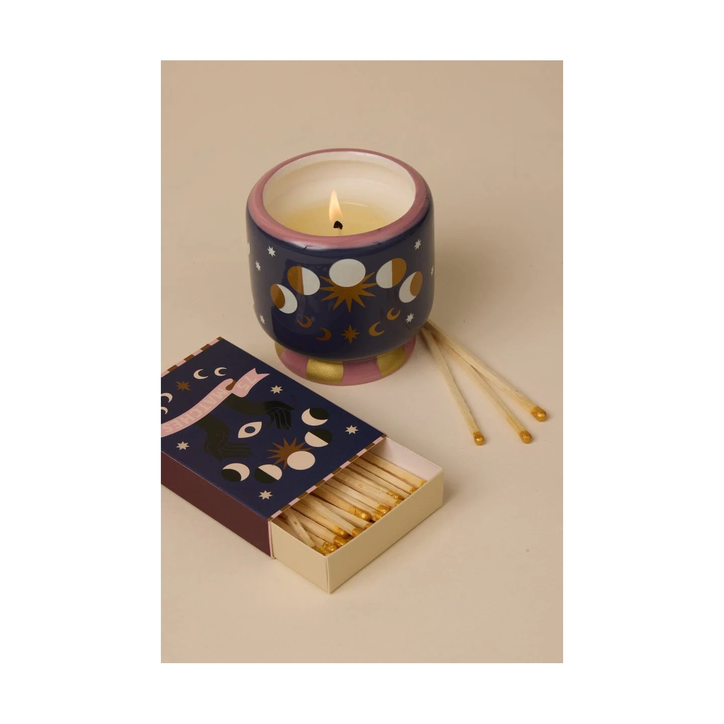 Ces bougies 100% cire de soja et céramique de 225 ml, décorées de détails peints à la main, diffusent des senteurs audacieuses en parfaite harmonie avec leur design singulier. Pour compléter l’expérience, elles se marient idéalement avec nos nouvelles boîtes d’allumettes assorties.