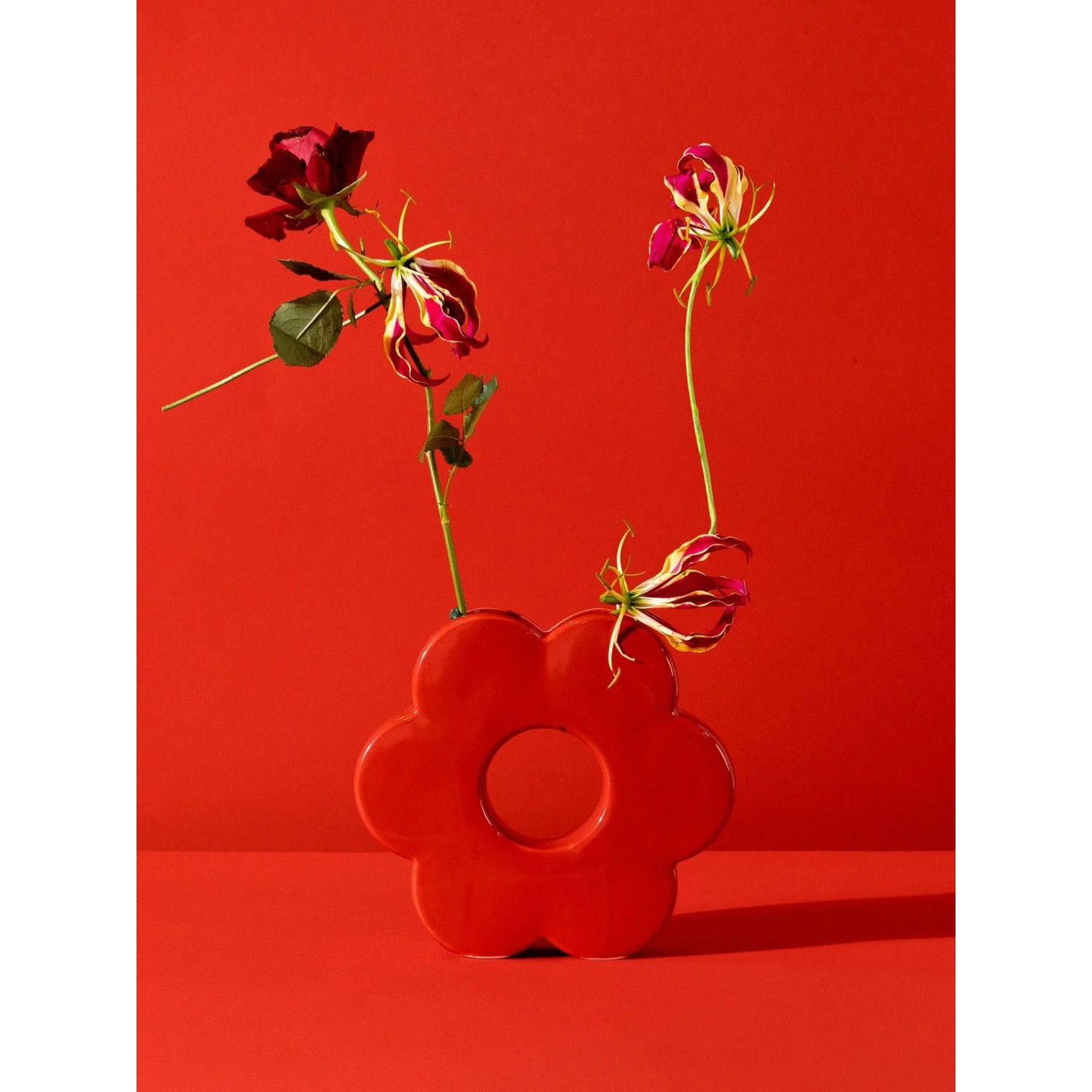 Vase en céramique au look rétro, le Daisy rouge met une touche pop et joyeuse dans n’importe quel intérieur. Avec ses courbes en forme de marguerite et sa couleur éclatante, il fait fleurir la déco sans même avoir besoin d’un bouquet. 🌼