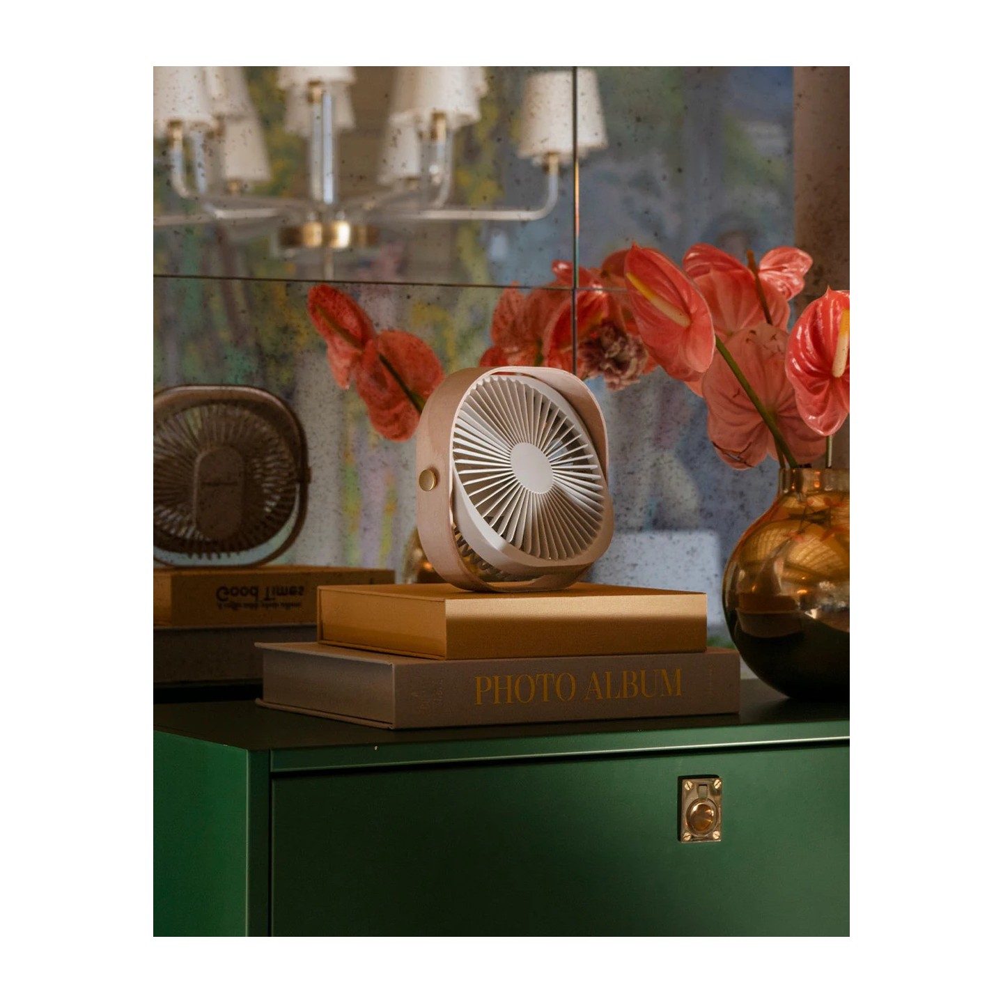 Faites souffler la brise… avec style ! Ce ventilateur ultra design rechargeable combine un cadre en bois de hêtre élégant et une face beige pleine de caractère. Il tourne à 360°, fonctionne en silence, et propose trois vitesses pour s’adapter à toutes vos envies — du souffle léger au vent d’été.