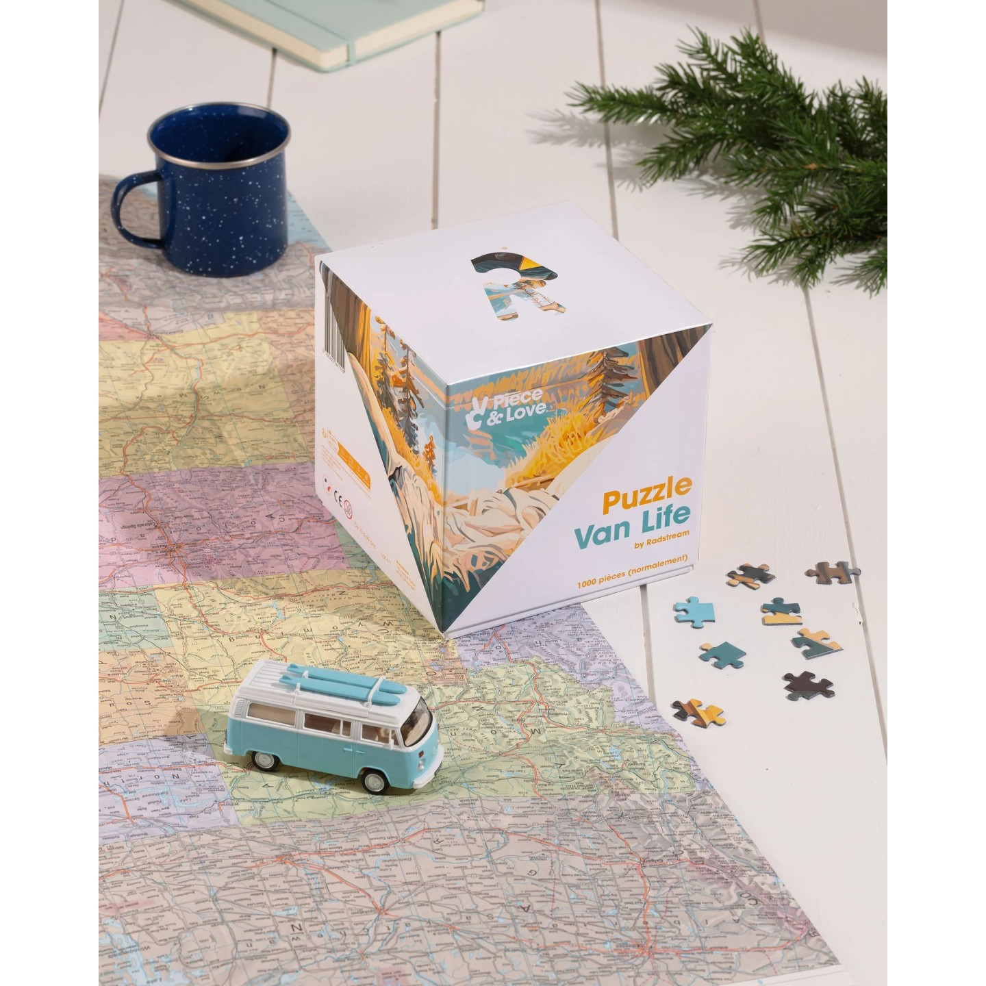 Le puzzle Vanlife nous embarque pour une virée colorée signée Radstream, artiste allemand qui joue avec l’intelligence artificielle pour créer des paysages oniriques et ultra poétiques.