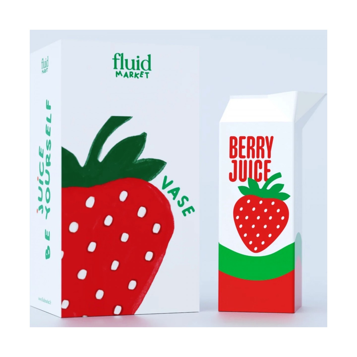 Un vase design signé Fluid Market, en forme de brique de jus de fraise : un clin d’œil pop et décalé qui transforme vos fleurs en boisson vitaminée pour les yeux. 🍓💐