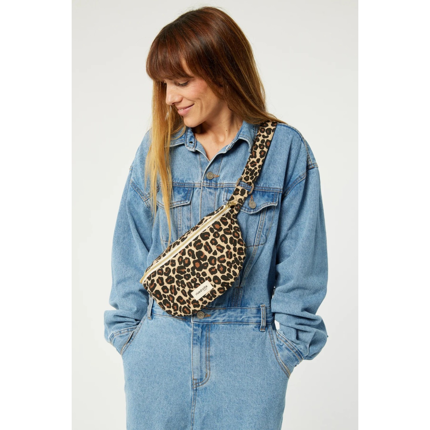 « Custine Léopard beige, le sac banane qui fait la diff : assez grand pour trimballer clés, téléphone, portefeuille et rouge à lèvres, tout en gardant les mains libres. Sa sangle réglable te laisse choisir : à la taille pour un look rétro ou en bandoulière pour filer l’air de rien. »