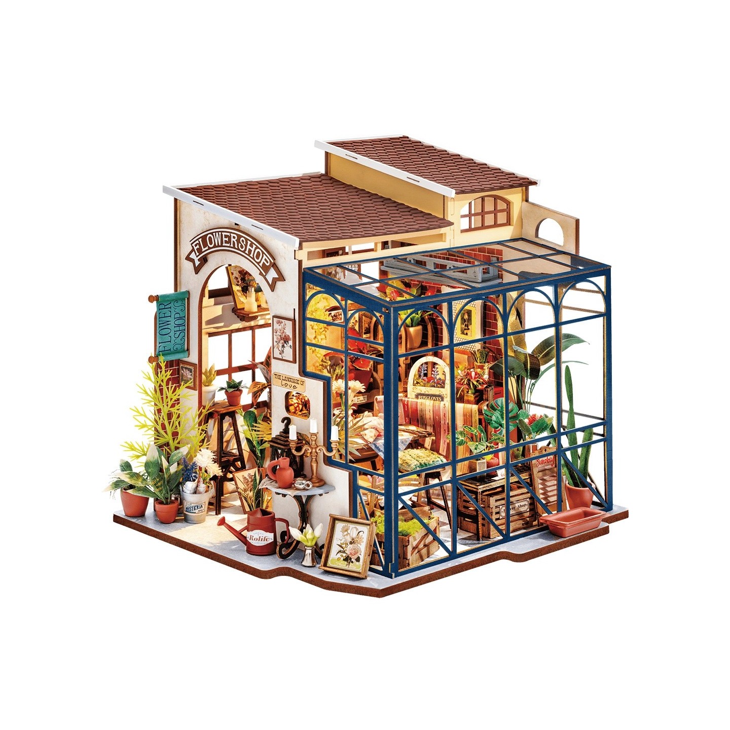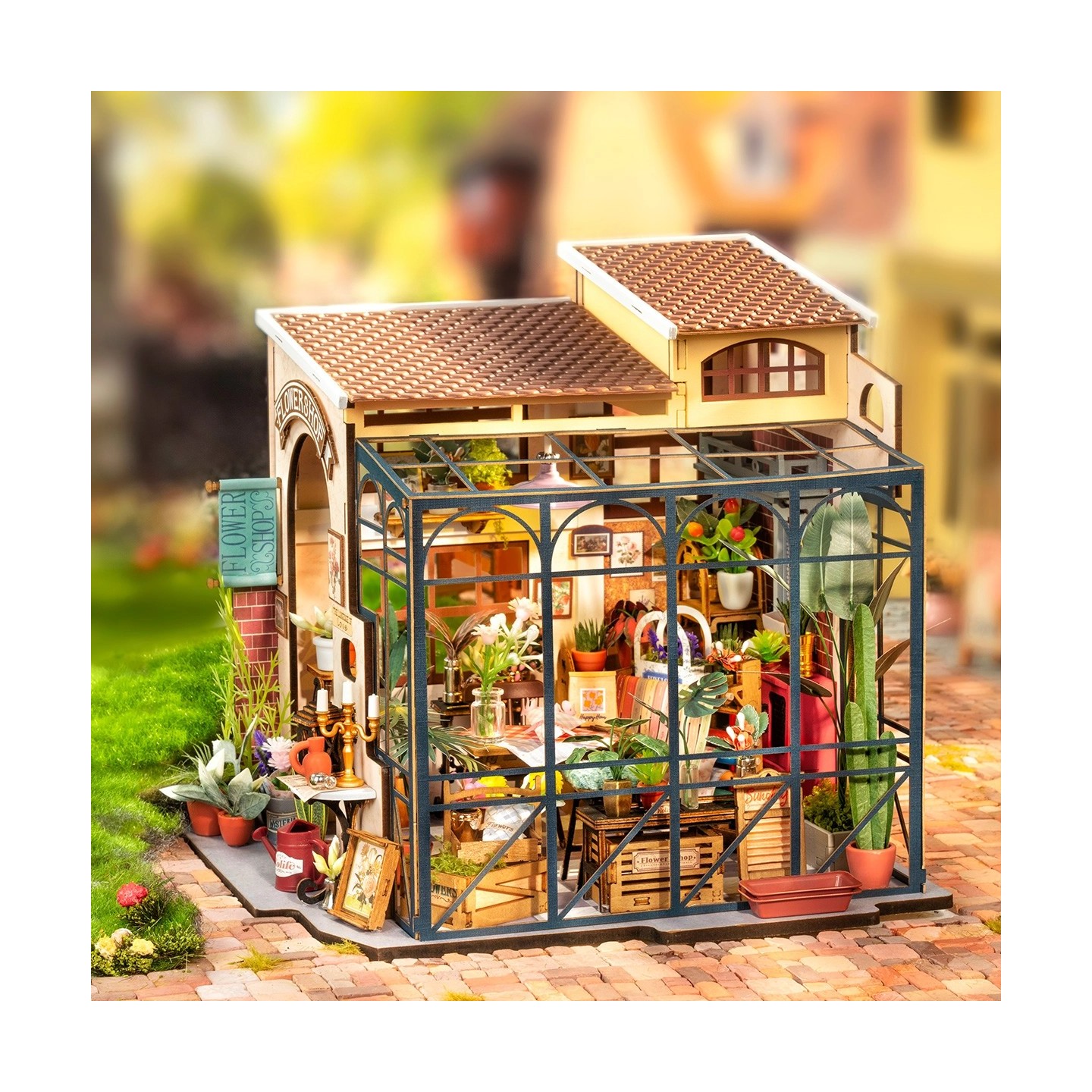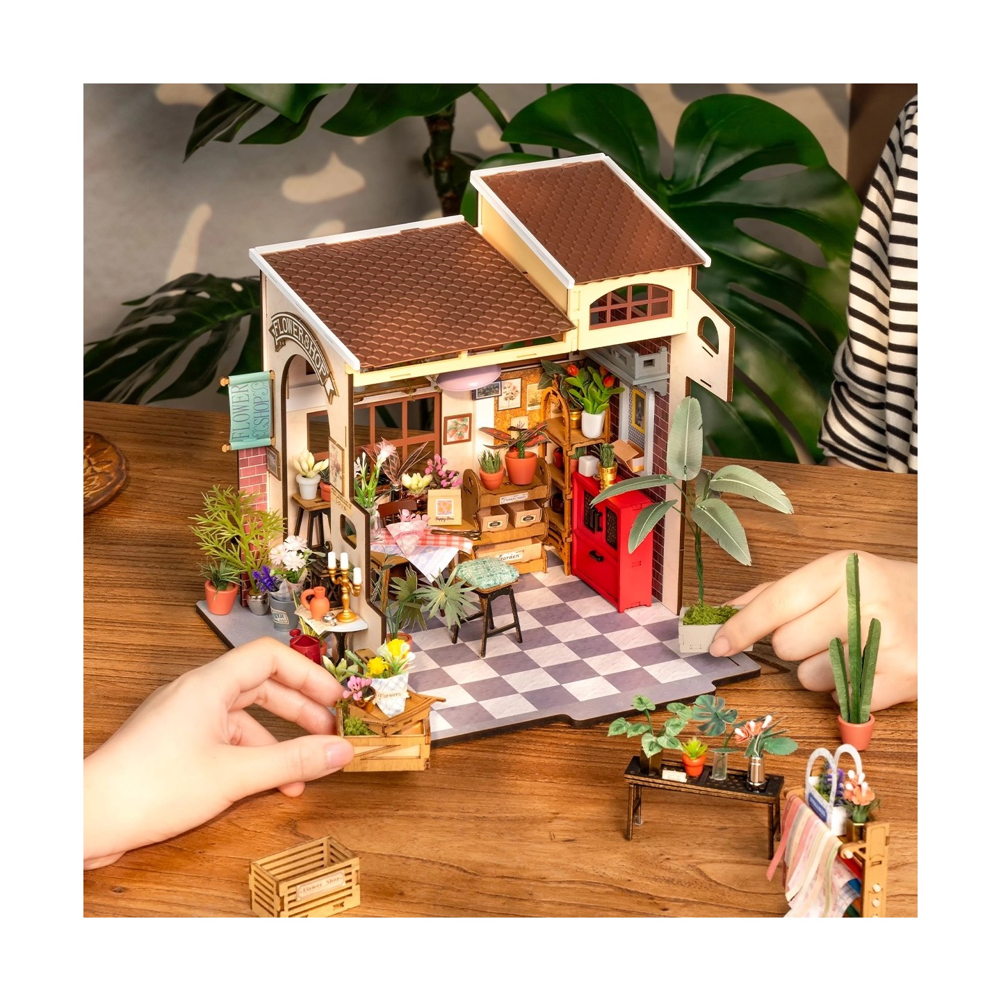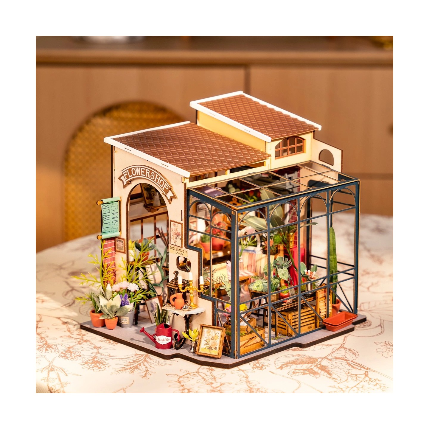 Avec ses étagères débordantes de pots, bouquets délicats et accessoires miniatures, ce kit DIY de Rolife vous emmène dans un univers cosy parfait pour les amateurs de détails et de déco tendresse.
