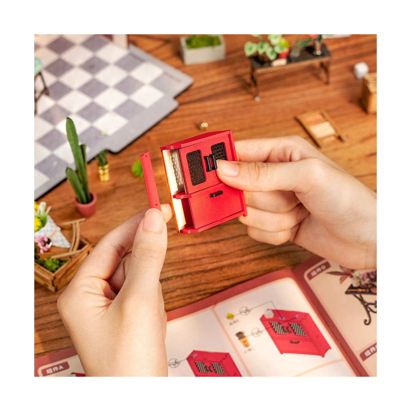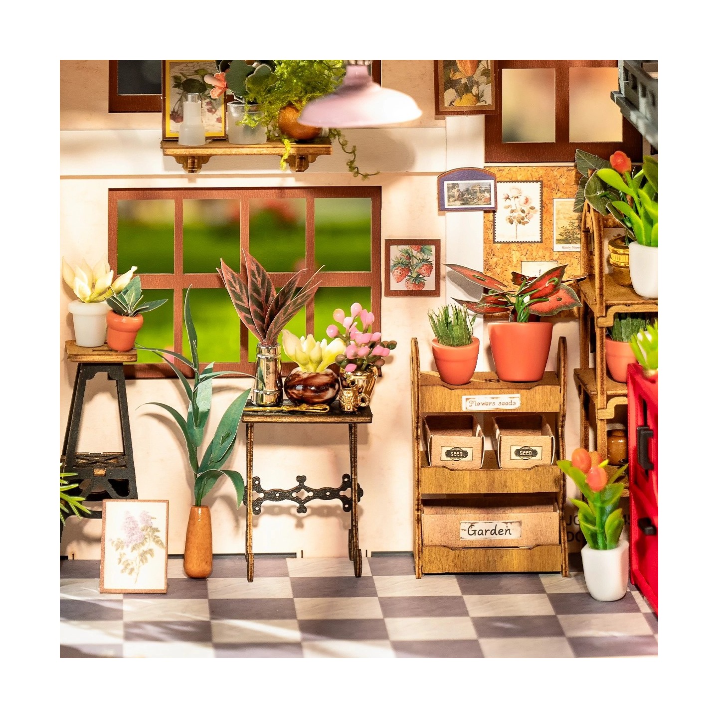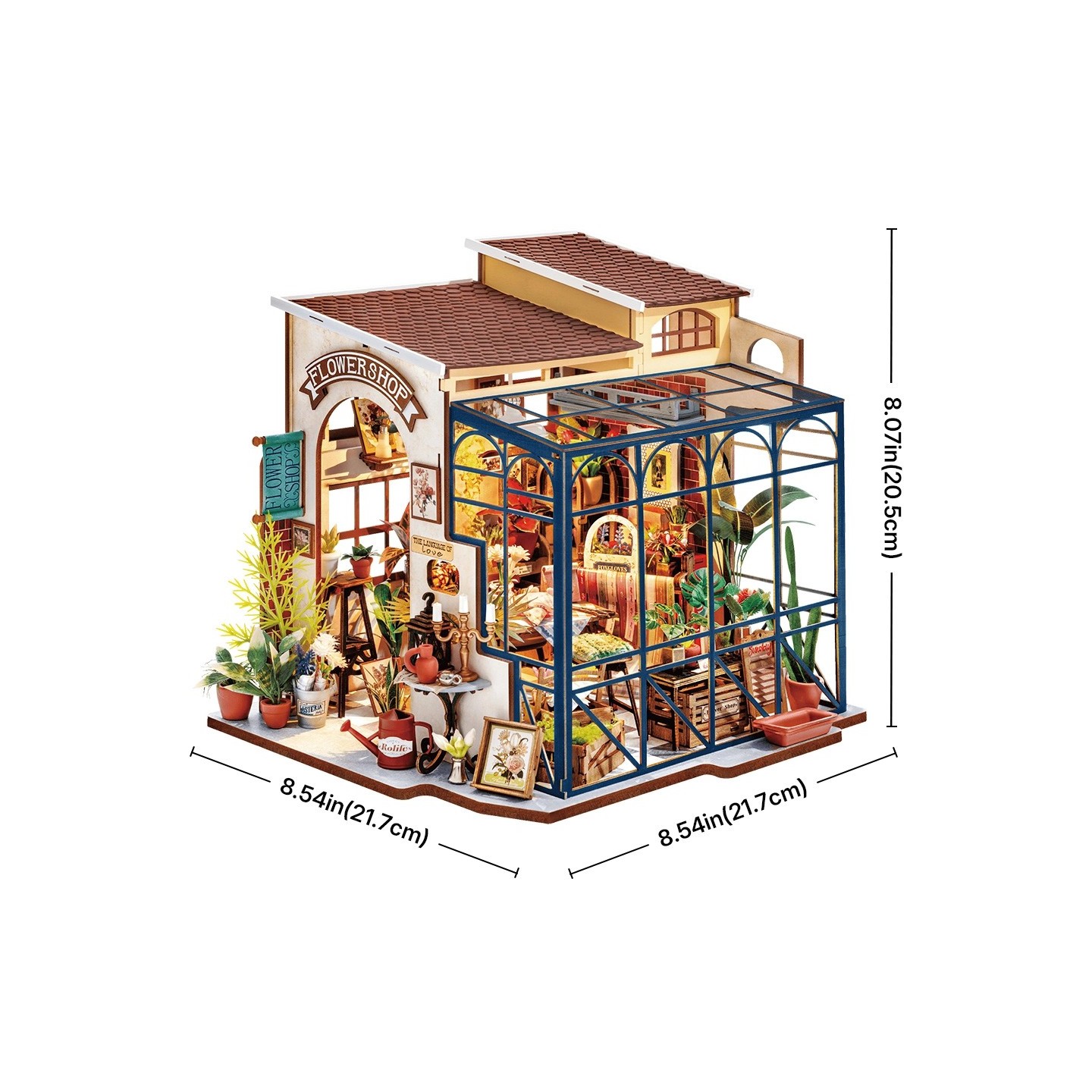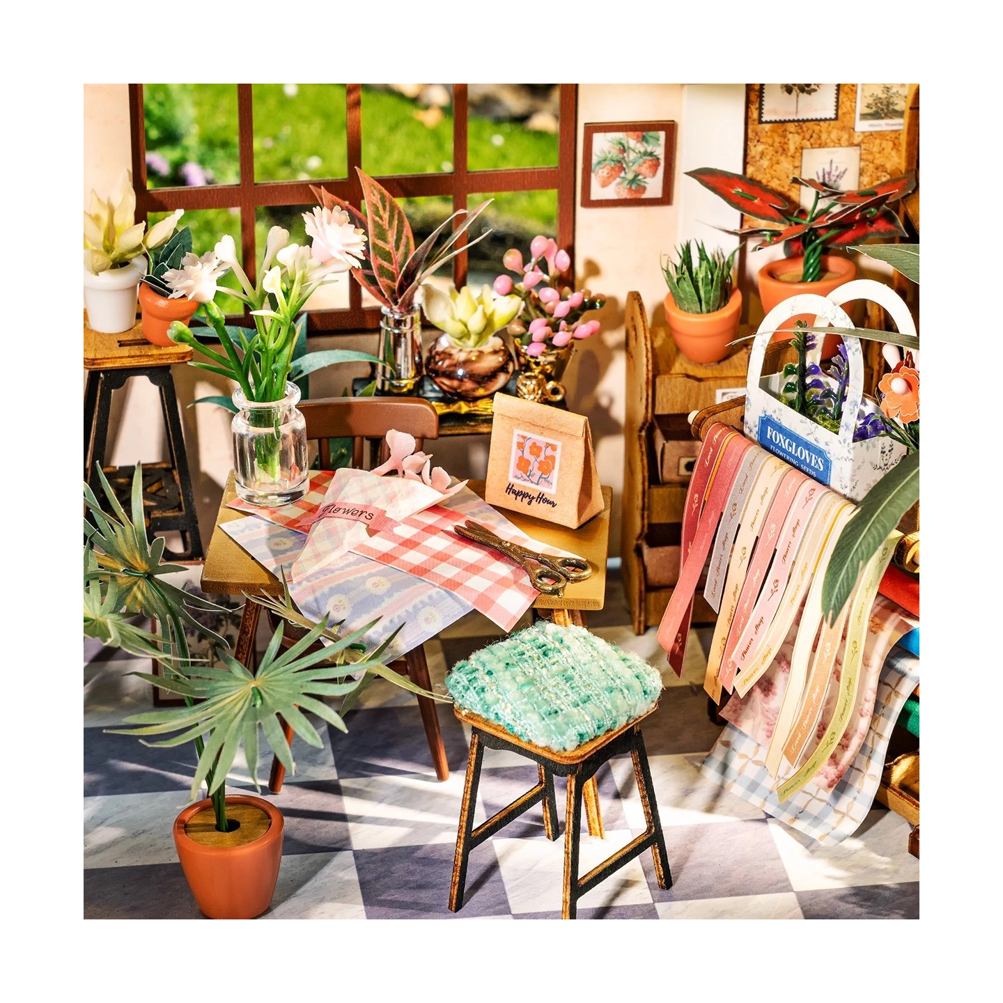 Avec ses étagères débordantes de pots, bouquets délicats et accessoires miniatures, ce kit DIY de Rolife vous emmène dans un univers cosy parfait pour les amateurs de détails et de déco tendresse.