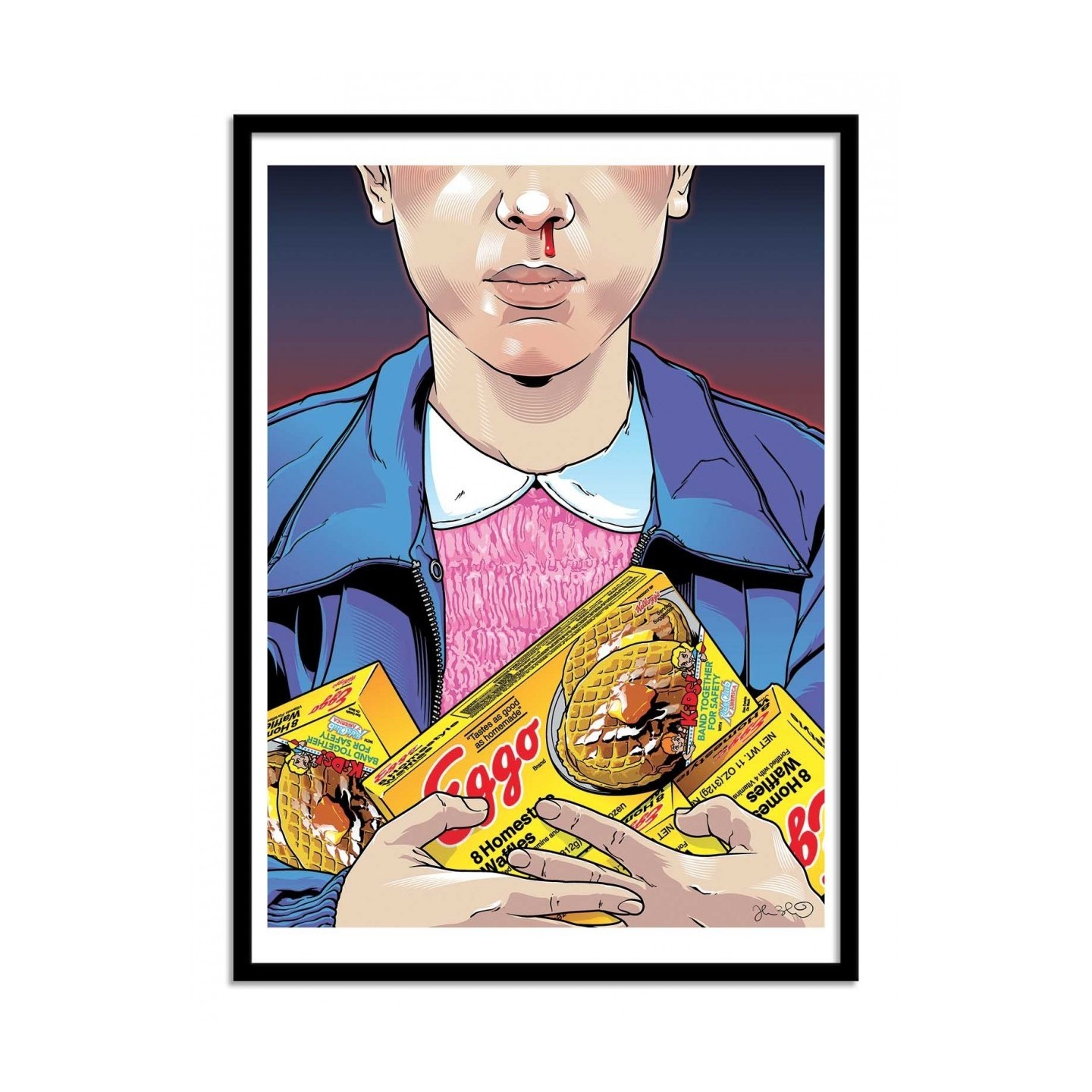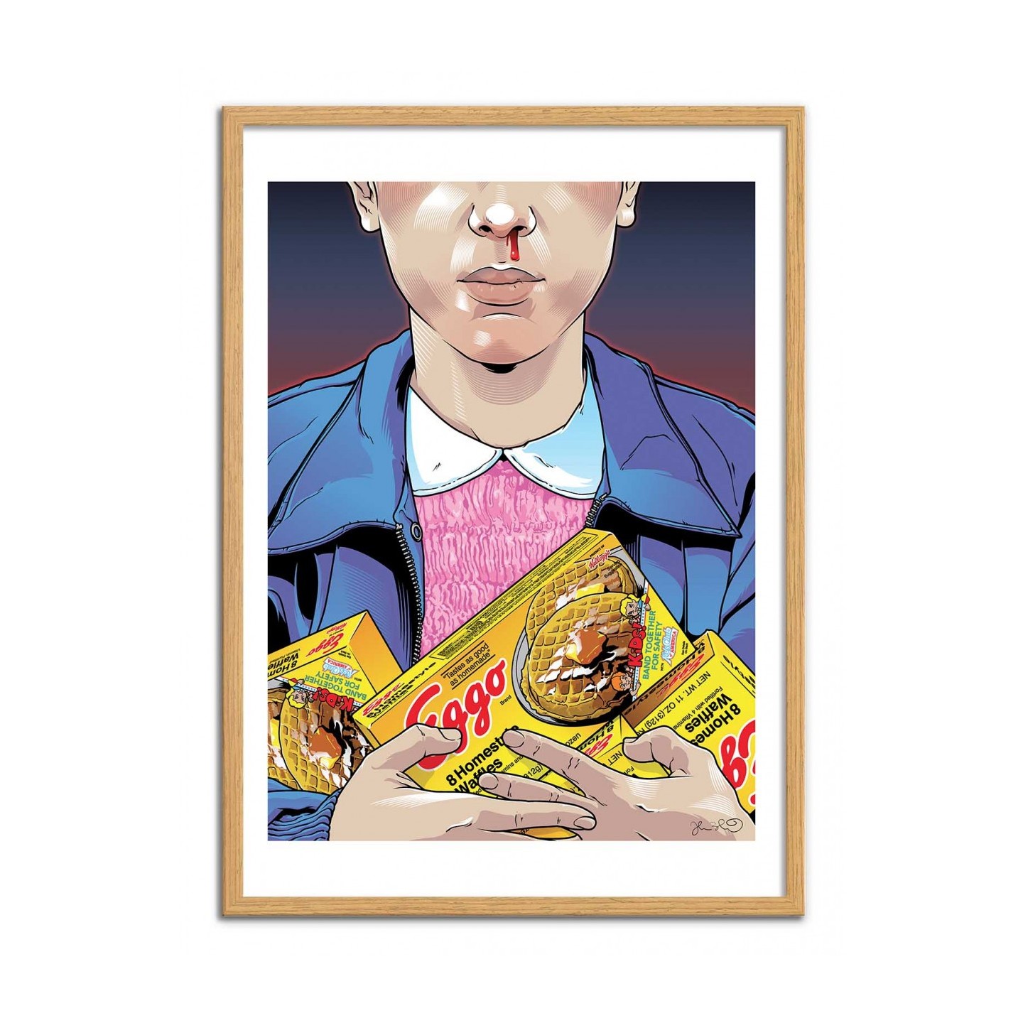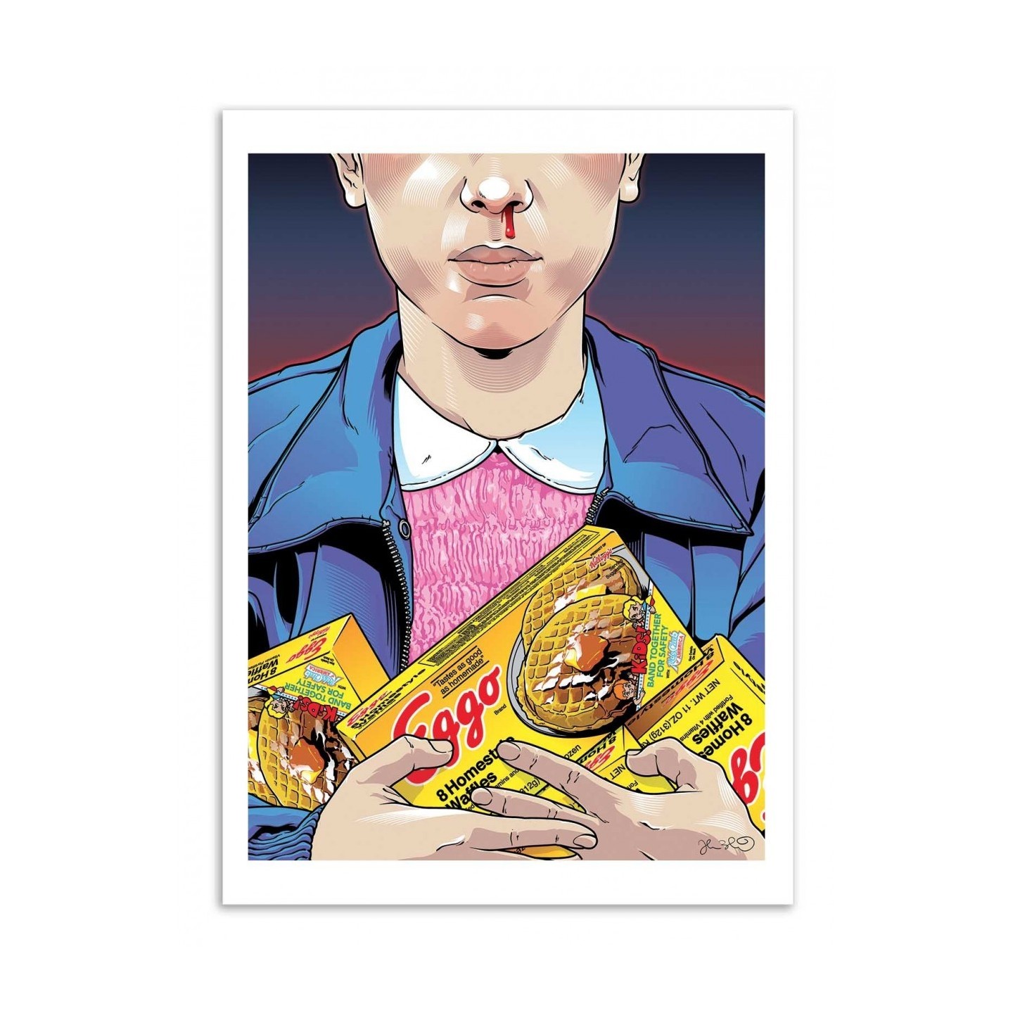 Cette affiche d’art signée Joshua Budich rend hommage à l’un des personnages les plus emblématiques de la culture contemporaine : Jane El Hopper, plus connue sous le nom d’Eleven, héroïne de la série culte Stranger Things.