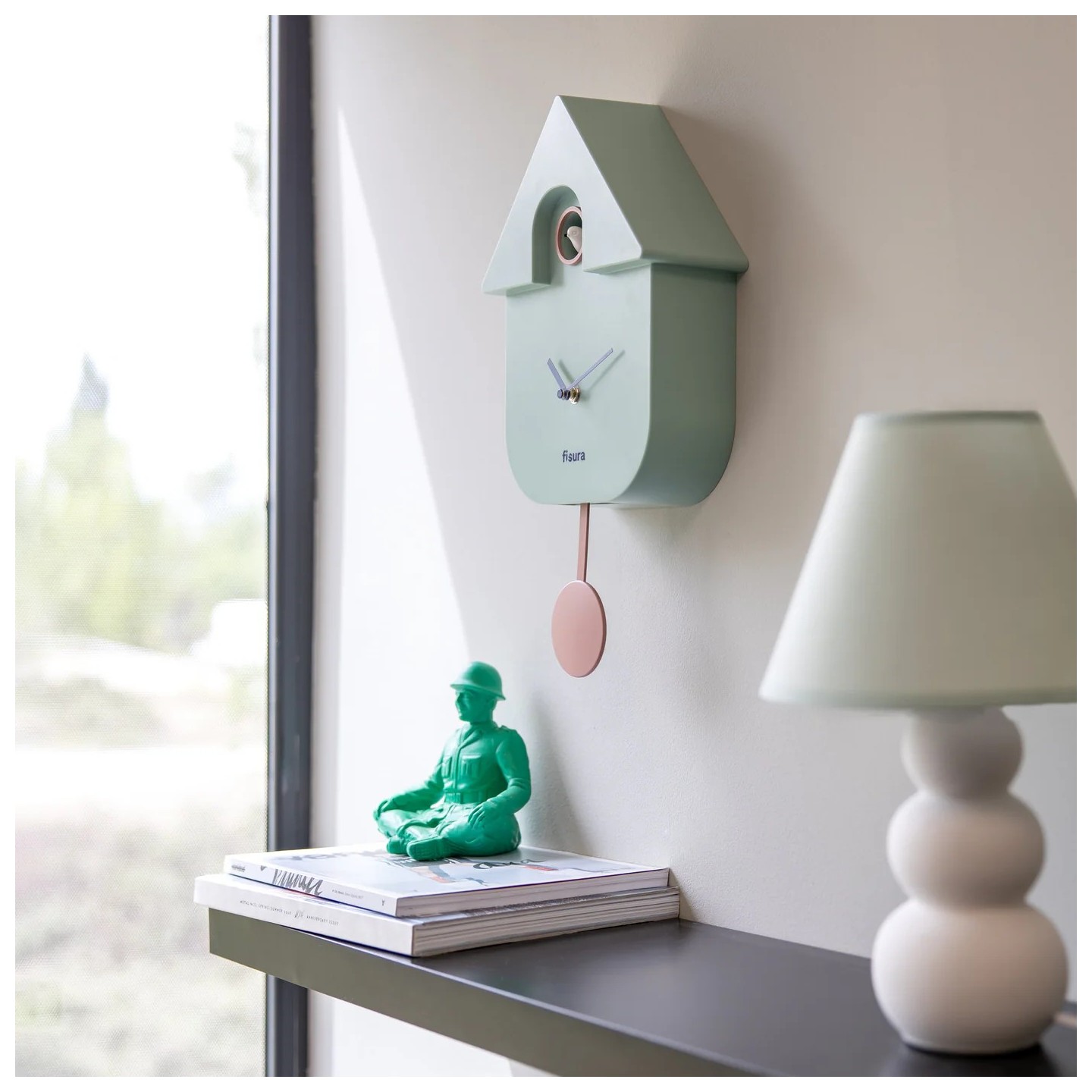 Le coucou classique en version design ! Une horloge moderne et colorée qui mixe minimalisme et fun : pendule graphique, oiseau qui chante à chaque heure et look épuré signé Fisura.