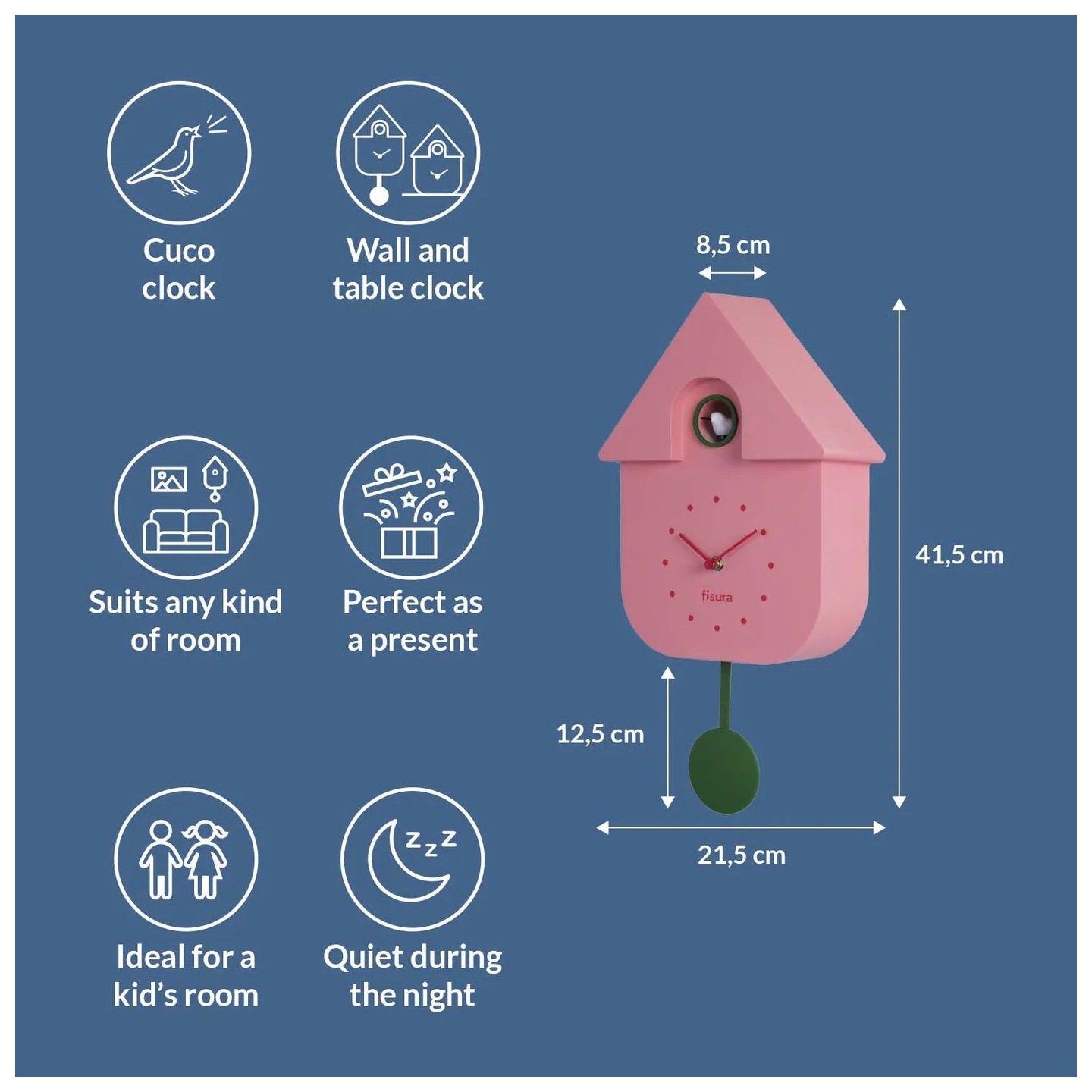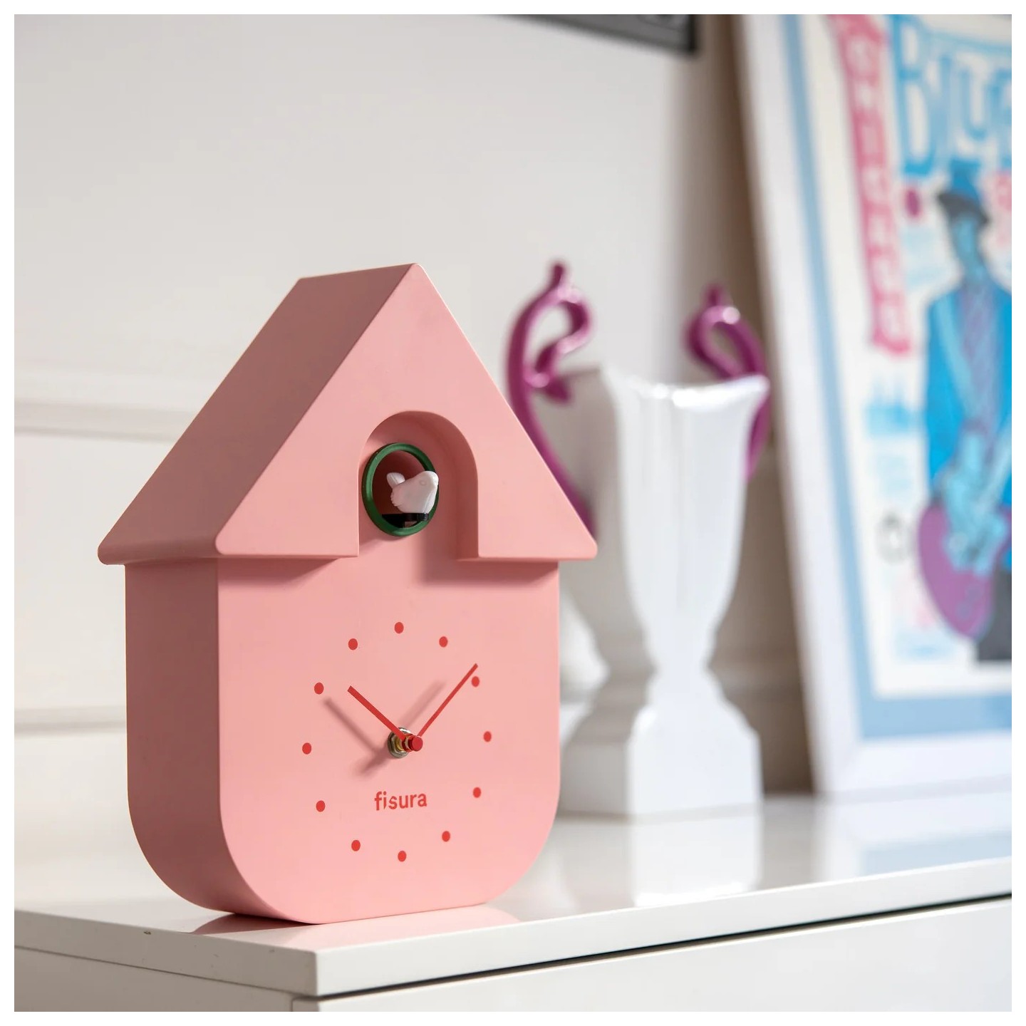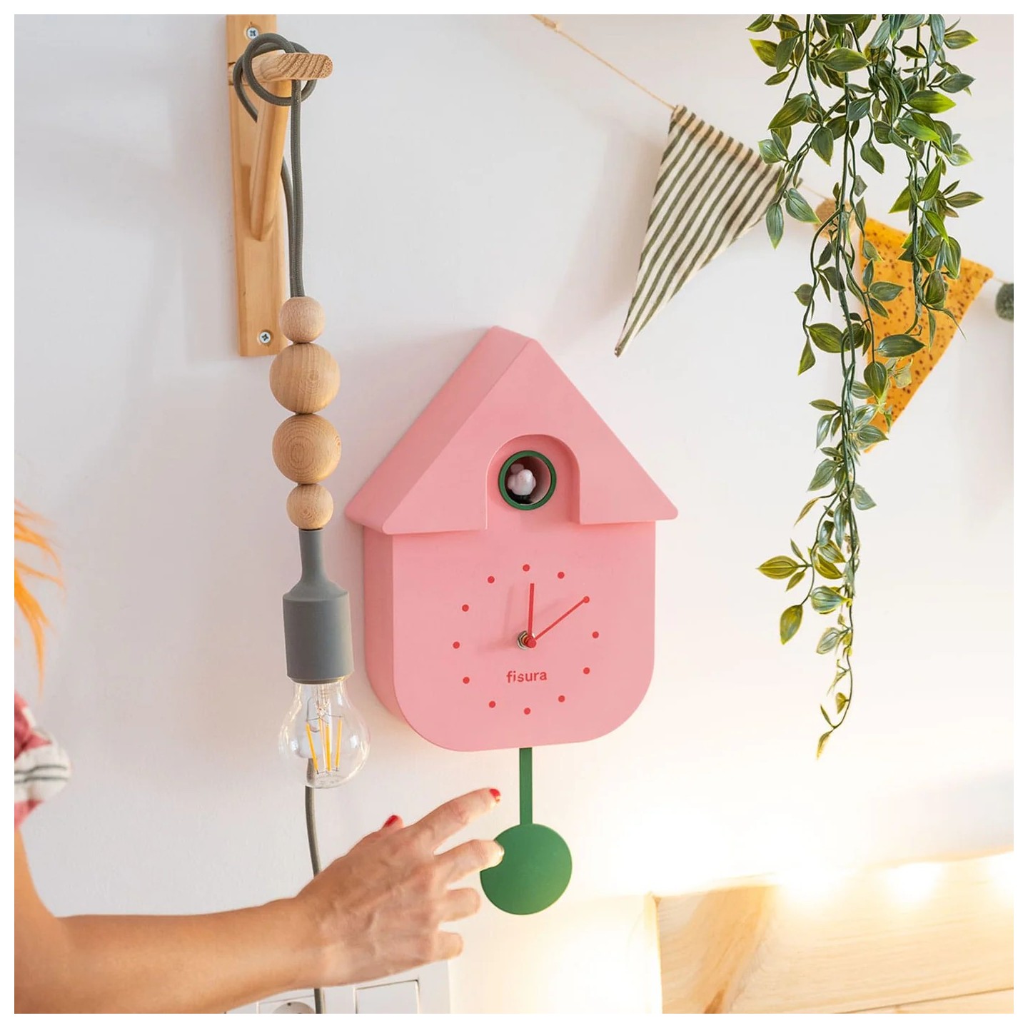 Le coucou classique en version design ! Une horloge moderne et colorée qui mixe minimalisme et fun : pendule graphique, oiseau qui chante à chaque heure et look épuré signé Fisura.