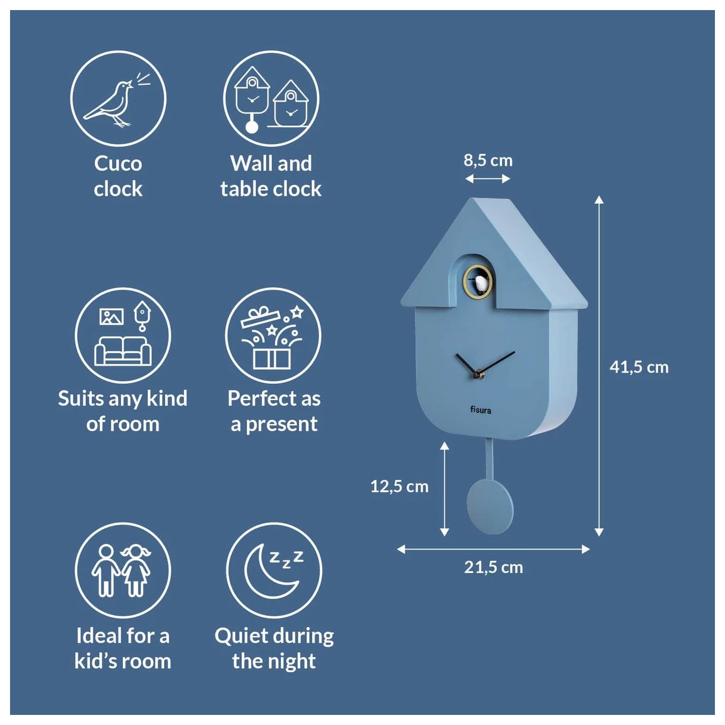 Le coucou classique en version design ! Une horloge moderne et colorée qui mixe minimalisme et fun : pendule graphique, oiseau qui chante à chaque heure et look épuré signé Fisura.