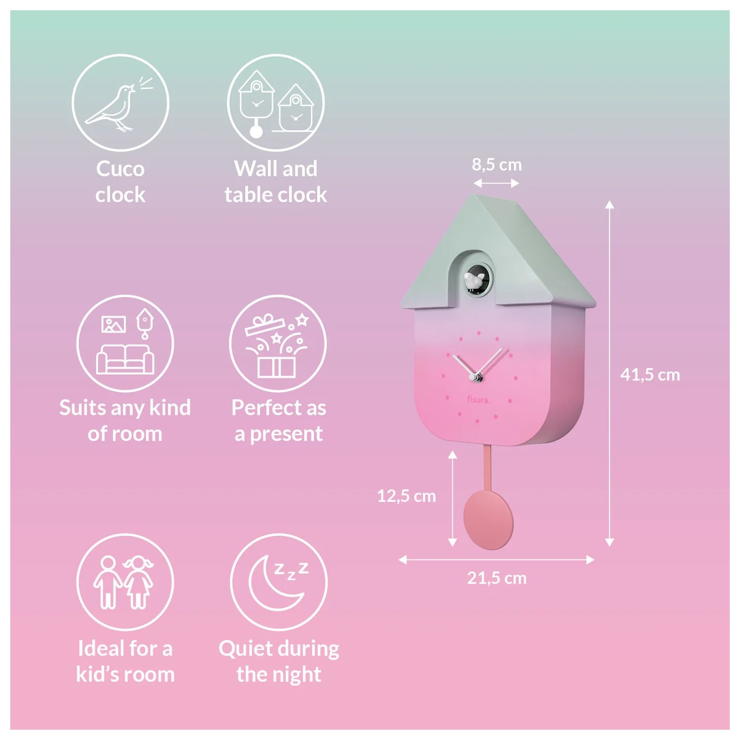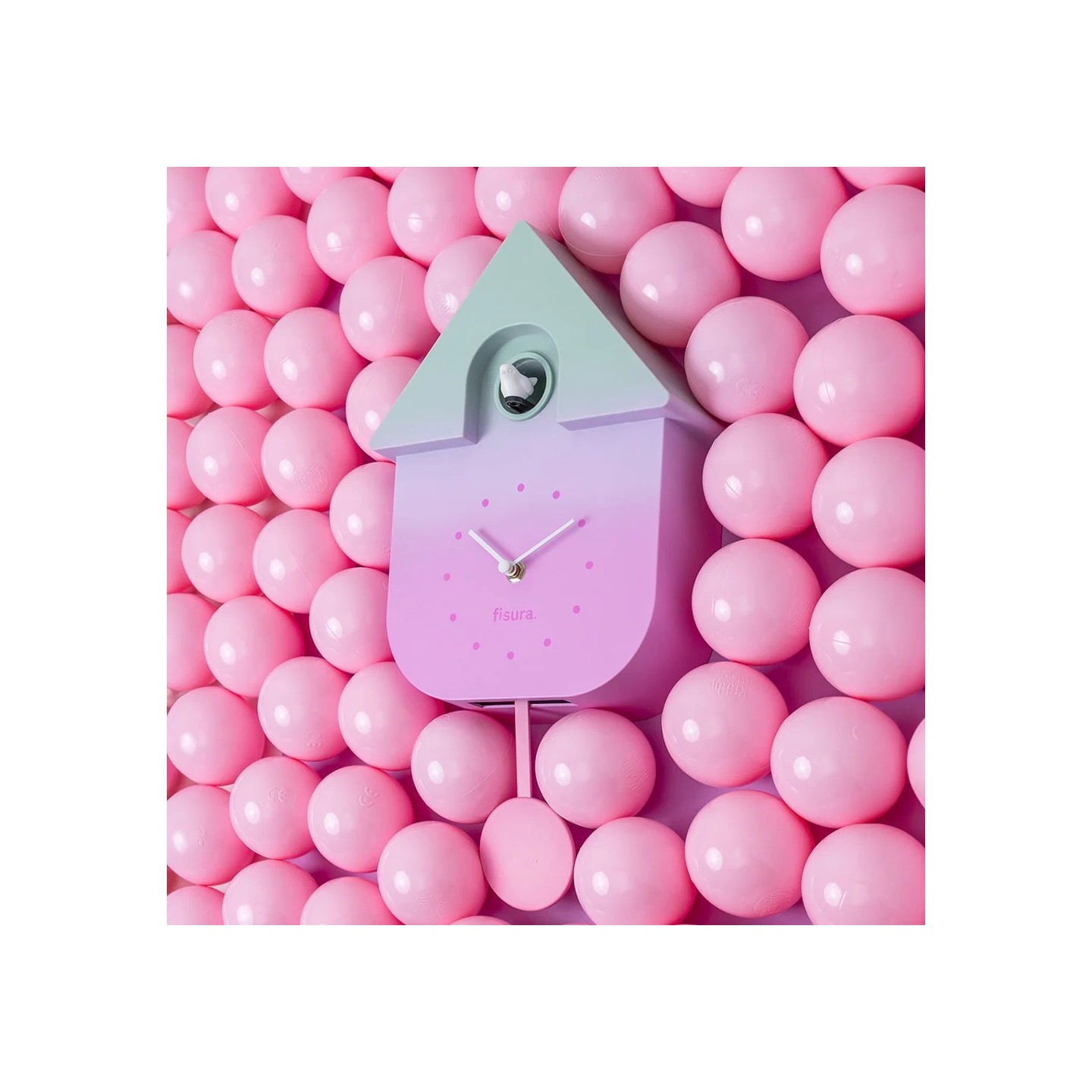 Le coucou classique en version design ! Une horloge moderne et colorée qui mixe minimalisme et fun : pendule graphique, oiseau qui chante à chaque heure et look épuré signé Fisura.