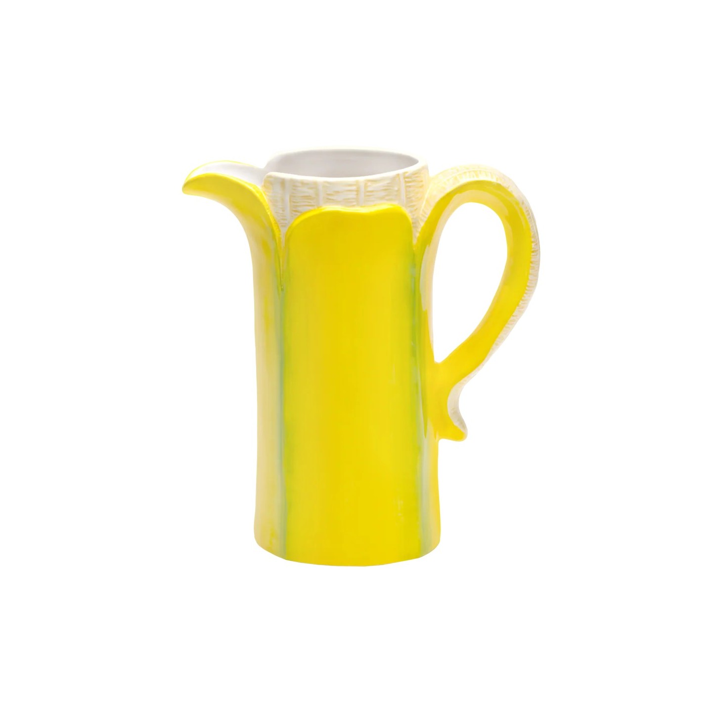 Quand la banane se prend pour une carafe ! Avec son design audacieux et sa couleur jaune éclatante, la Banana Romance Carafe apporte instantanément du soleil et du sourire à la table. En dolomite de qualité, elle peut contenir jusqu’à 1,3 L de boisson — eau, jus, cocktail ou potion magique, à vous de choisir !