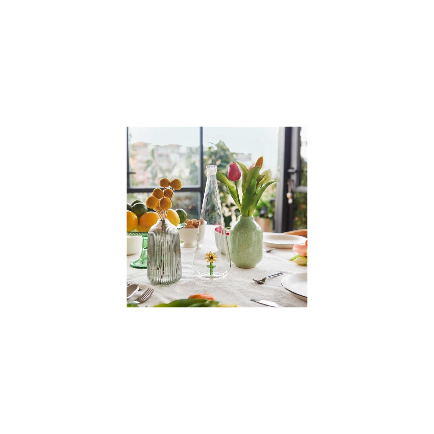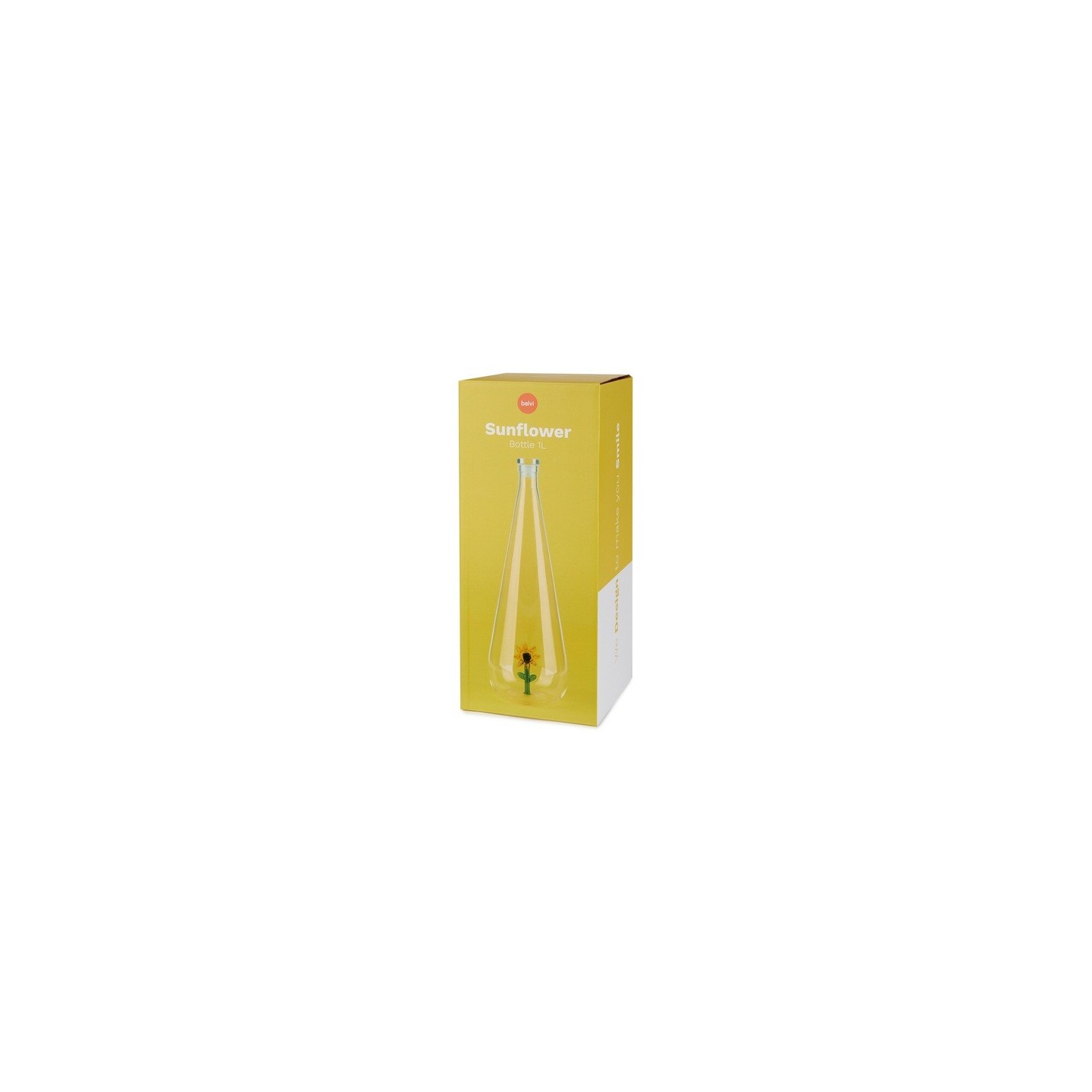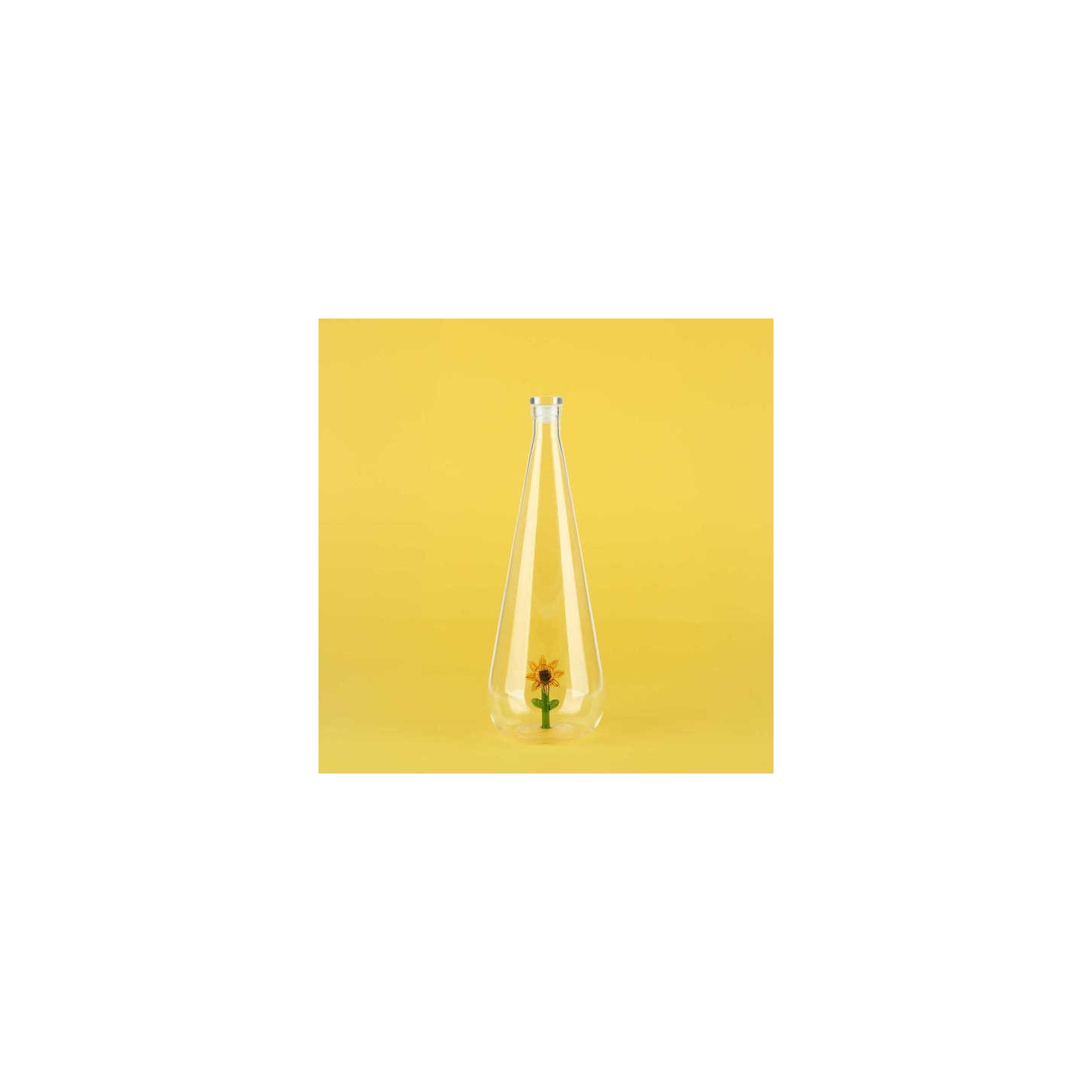 Avec son tournesol éclatant enfermé dans le verre, la bouteille Botanical de Balvi apporte un rayon de soleil à chaque gorgée.